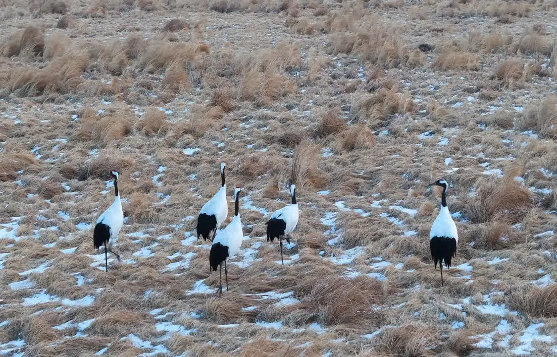 这是3月21日在黑龙江三环泡国家级自然保护区拍摄的丹顶鹤(无人机照片)。新华社发(曲玉宝摄)