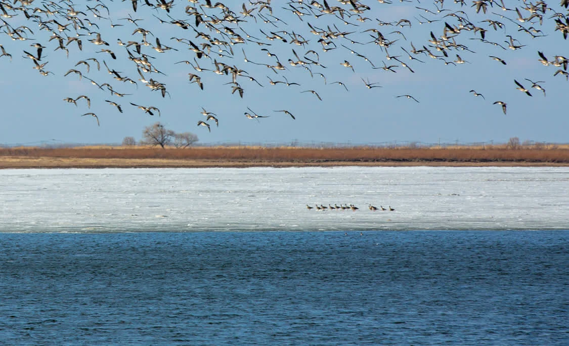 春日,中国最北省份黑龙江省冰雪渐融,各类北归候鸟陆续飞抵省内各处湿地与水域,为北国春色增添一抹灵动生机。