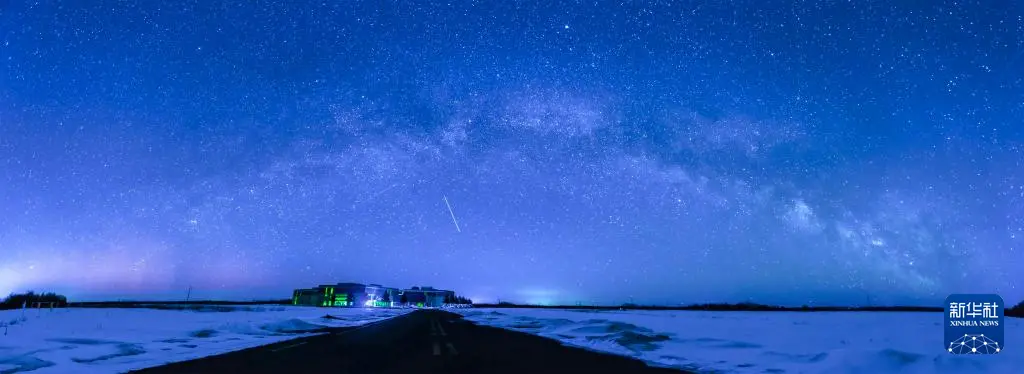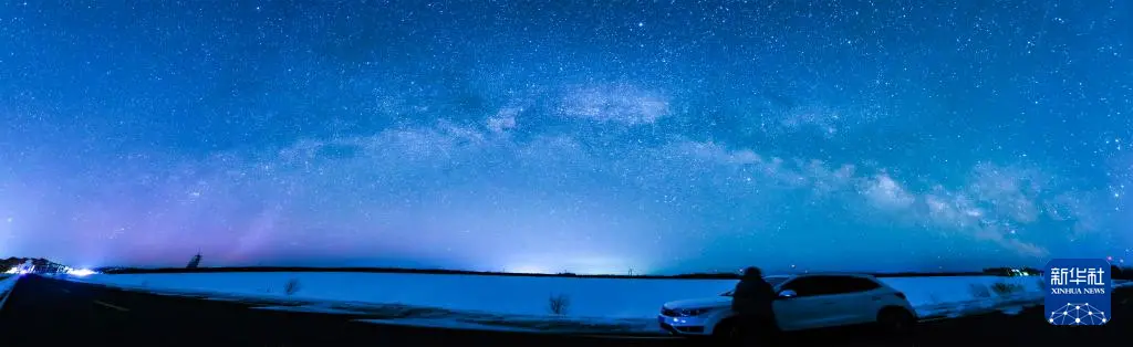 这是3月17日在黑龙江省桦川县拍摄的“银河拱桥”(拼接照片)。
