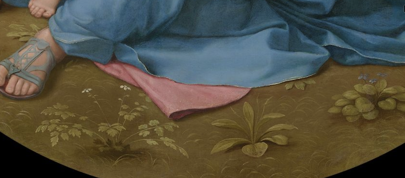 《阿尔瓦圣母》(局部),画作前景中对于植物的描绘