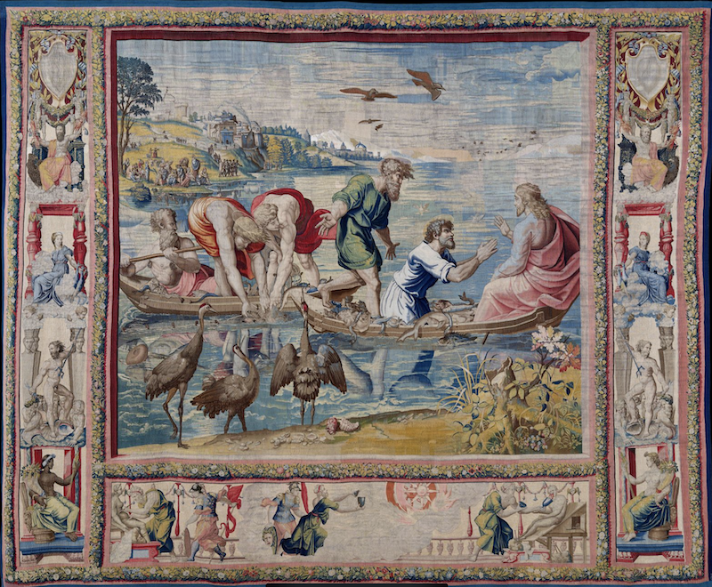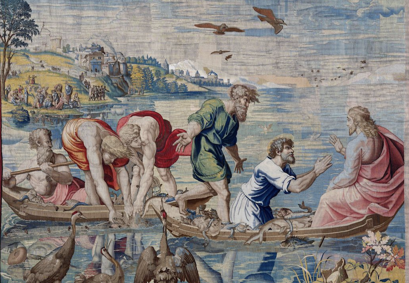 南加州大学艺术史学家丽莎·庞恩(Lisa Pon)认为,没有哪位艺术家比拉斐尔更重视合作。庞恩即将出版的拉斐尔传记描绘了一个“不羁的拉斐尔”,而非人们印象中的严谨之人。其《捕鱼奇迹》是纽约大都会艺术博物馆特展中的三幅挂毯之一,是拉斐尔于16世纪10年代中期为描绘《圣经·使徒行传》而创作的一系列作品。这些纺织品是为西斯廷教堂委托制作的,悬挂在米开朗基罗著名的天顶画下方。