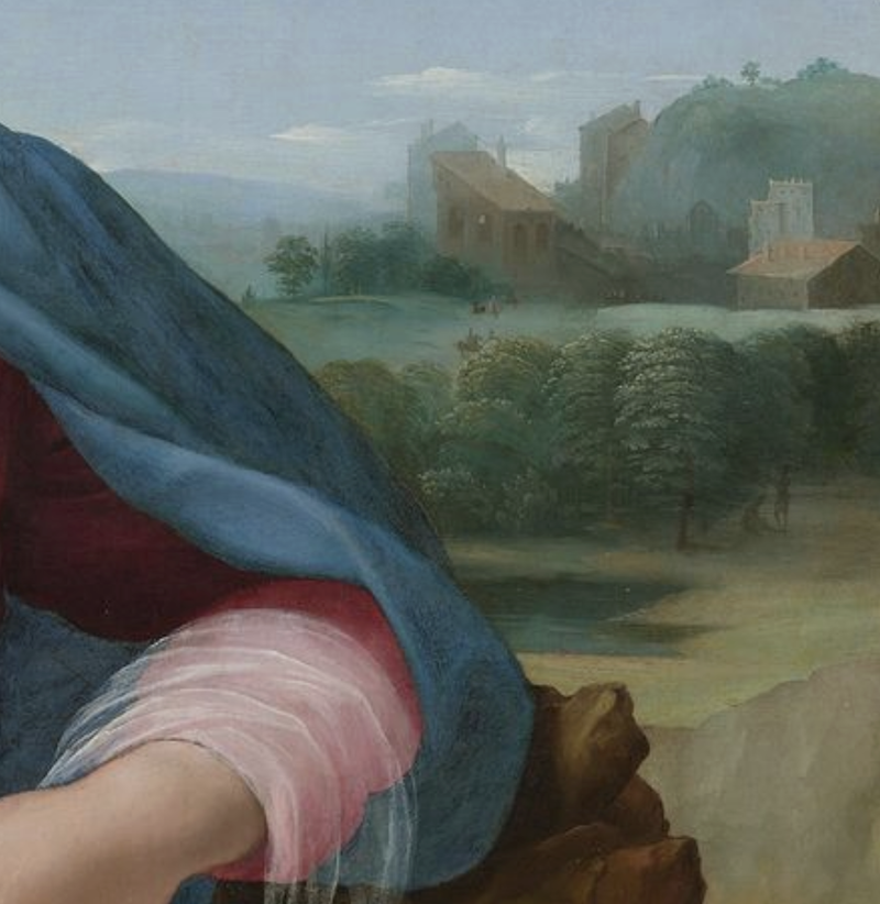 《阿尔瓦圣母》(局部),蓝色披风与背景相融合