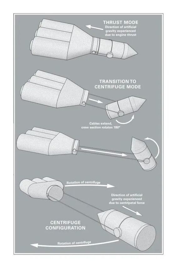 飞船切换到离心机模式时,需要让上下两部分分开,乘员舱部分旋转180度 | 《挽救计划》图书