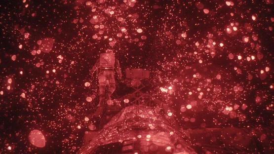 按照设定,背景中的红色光是噬星体移动时发出的红外光,电影中处理成了肉眼可见的效果 | 官方剧照