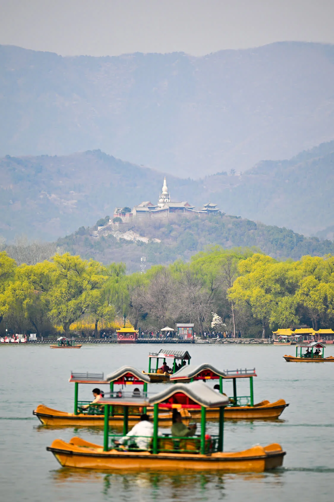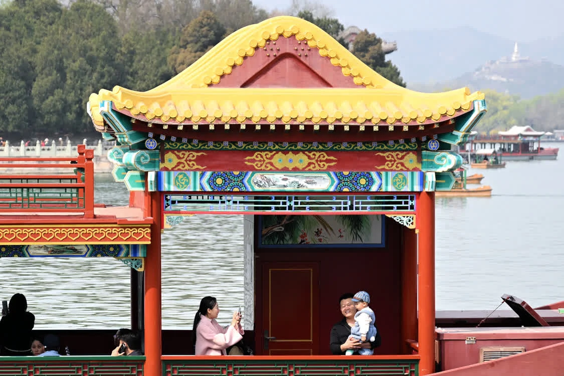 3月28日,人们在北京颐和园乘船游玩。新华社记者 辛悦卫 摄