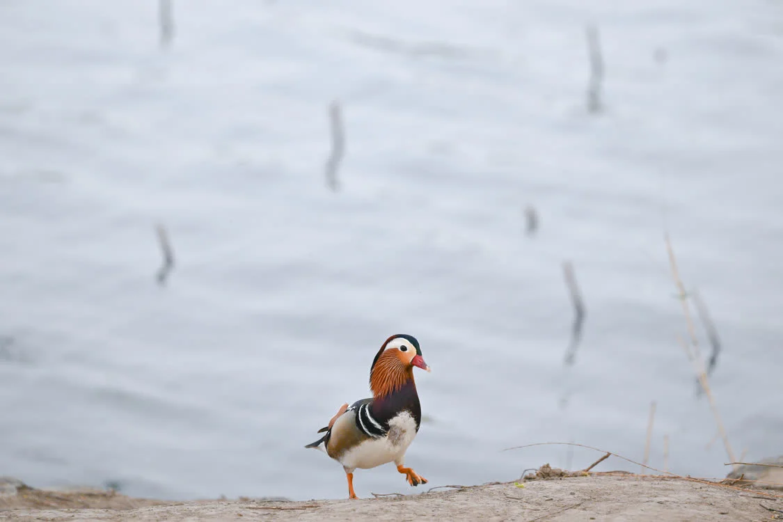 3月27日,一只鸳鸯在北京颐和园内踱步。新华社记者 辛悦卫 摄