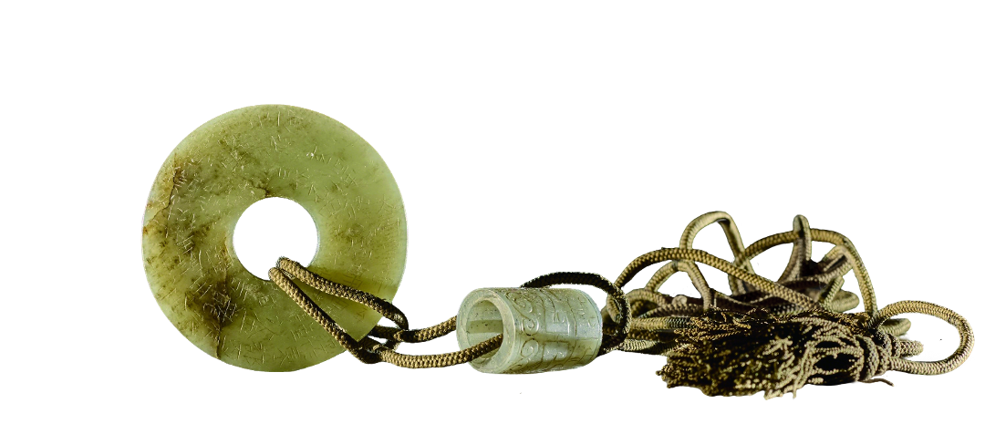 投龙玉璧 玉璧绦带(仿制品) 后晋天福五年(940,南唐昇元四年) 2016年浙江台州黄岩屿头乡前礁村赵伯澐墓出土 黄岩区博物馆藏