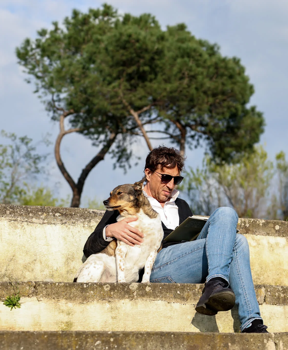 3月29日,一名男子怀抱宠物犬在意大利首都罗马的博尔盖塞公园休闲。新华社记者 王楷焱 摄