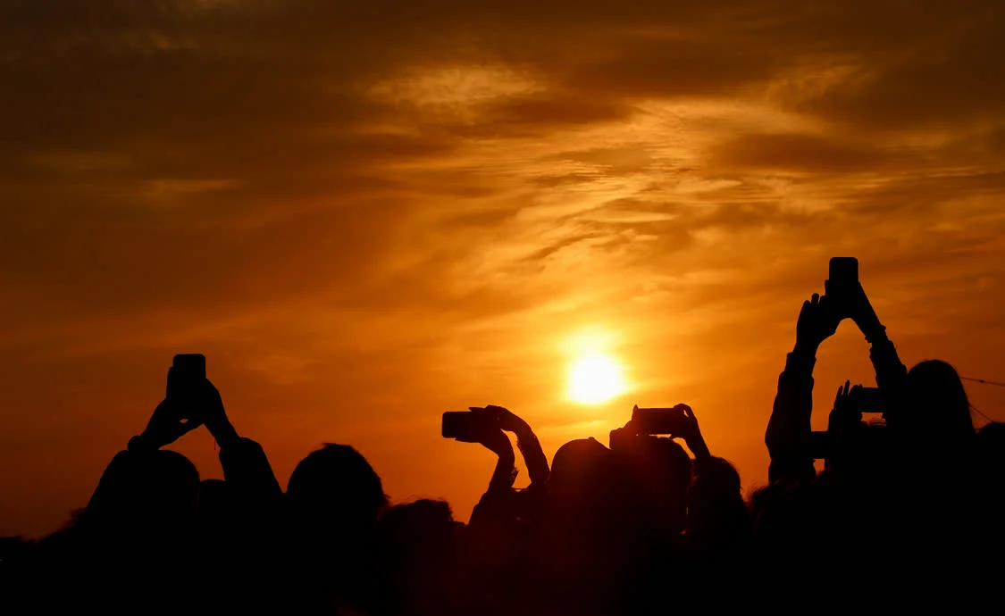 3月29日,人们在意大利首都罗马的苹丘欣赏日落。新华社记者 王楷焱 摄