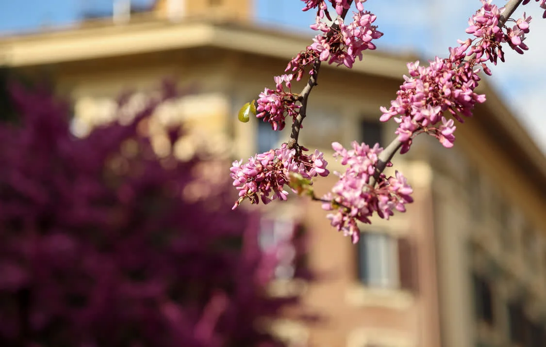 这是3月29日在意大利首都罗马拍摄的紫荆花。新华社记者 王楷焱 摄