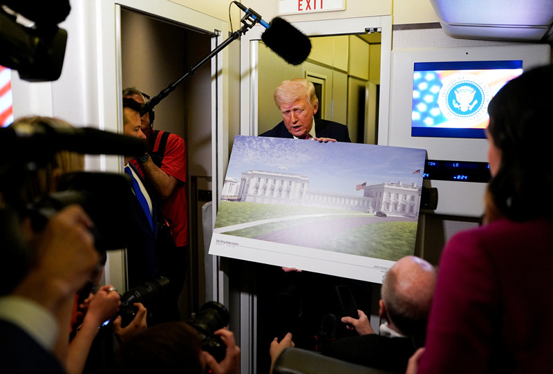 特朗普则坚持认为该项目不受任何监督的约束,他能够在没有严格审查的情况下继续推进。3月29日,他还在“空军一号”专机上向媒体介绍这一项目,“我认为,它将会成为全世界最顶级的宴会厅。”