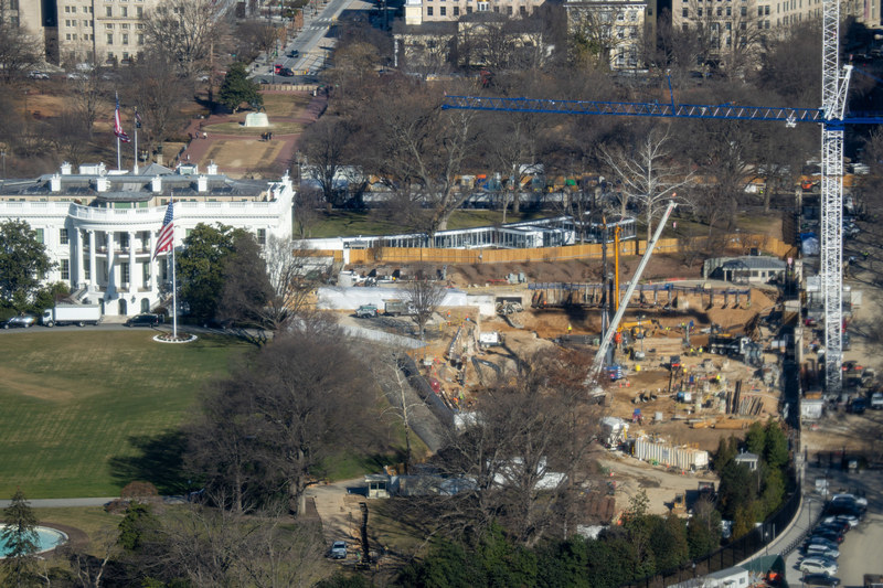 当地时间2026年1月20日,美国华盛顿,白宫宴会厅建设工程持续进行。 IC Photo