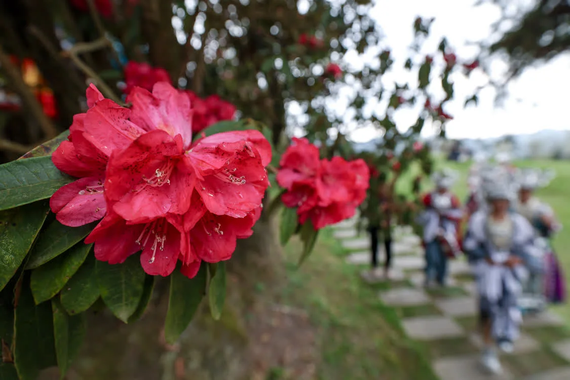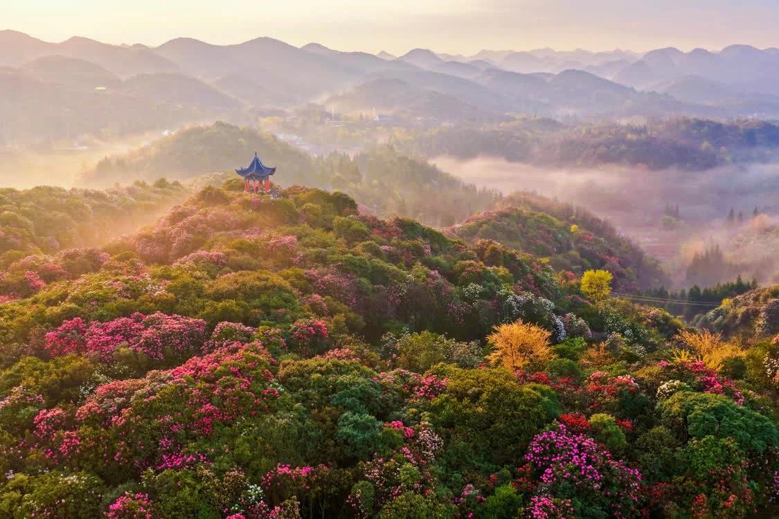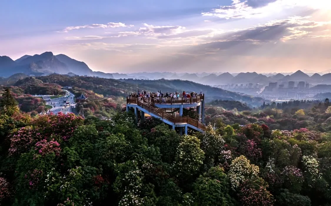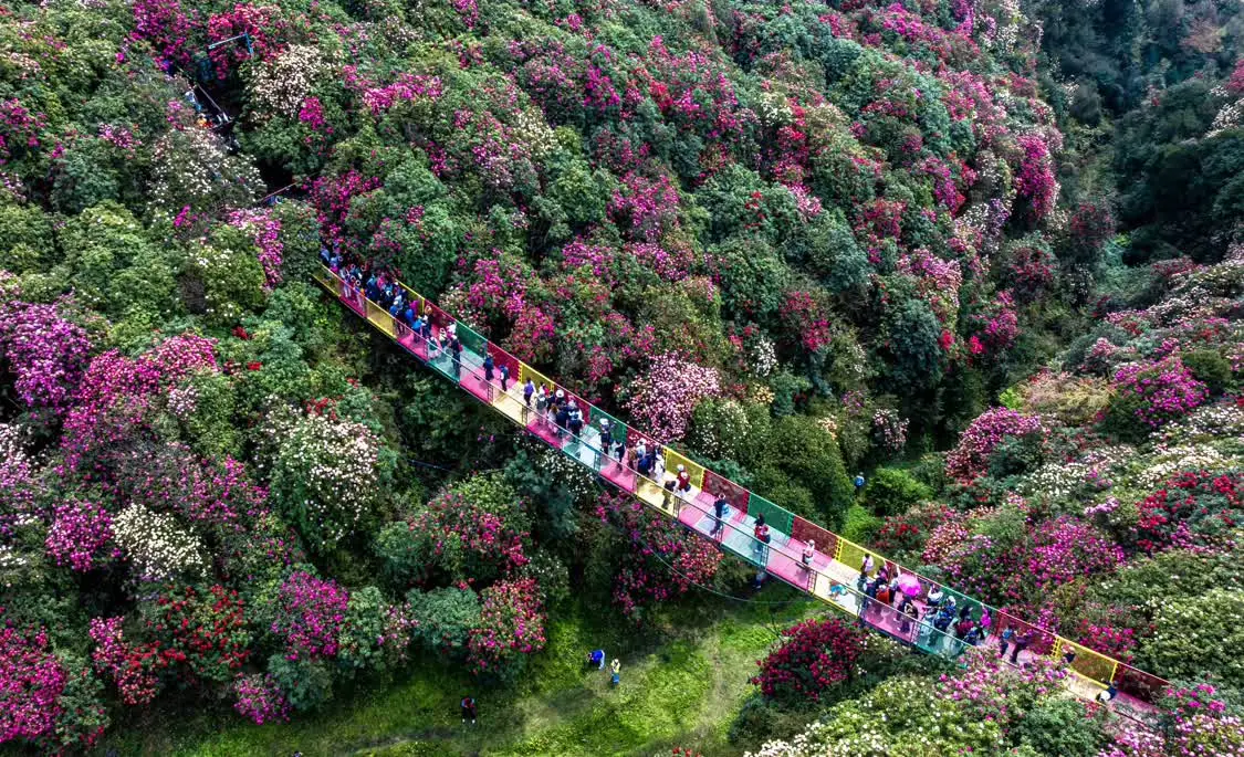 “几日春风又春雨,杜鹃依旧映山红。”这是清代阮元描绘杜鹃花的诗句。近日,贵州省毕节市百里杜鹃管理区内的杜鹃花迎来盛花期。杜鹃花是中国三大自然野生名花之一,也是世界四大高山花卉之一。百里杜鹃管理区内分布着绵延125.8平方公里的原始杜鹃林带,每年三四月份,40多个品种的杜鹃花竞相盛开,“地球彩带,世界花园”的独特魅力,吸引着来自各地的游客。漫山遍野的杜鹃花引爆旅游市场的同时,还带动杜鹃文创、花卉培育、特色民宿等产业蓬勃发展。据了解,百里杜鹃管理区2025年共接待游客超800万人次,花卉培育产业产值超1000万元,让得天独厚的美丽风景不断转化为“美丽经济”。