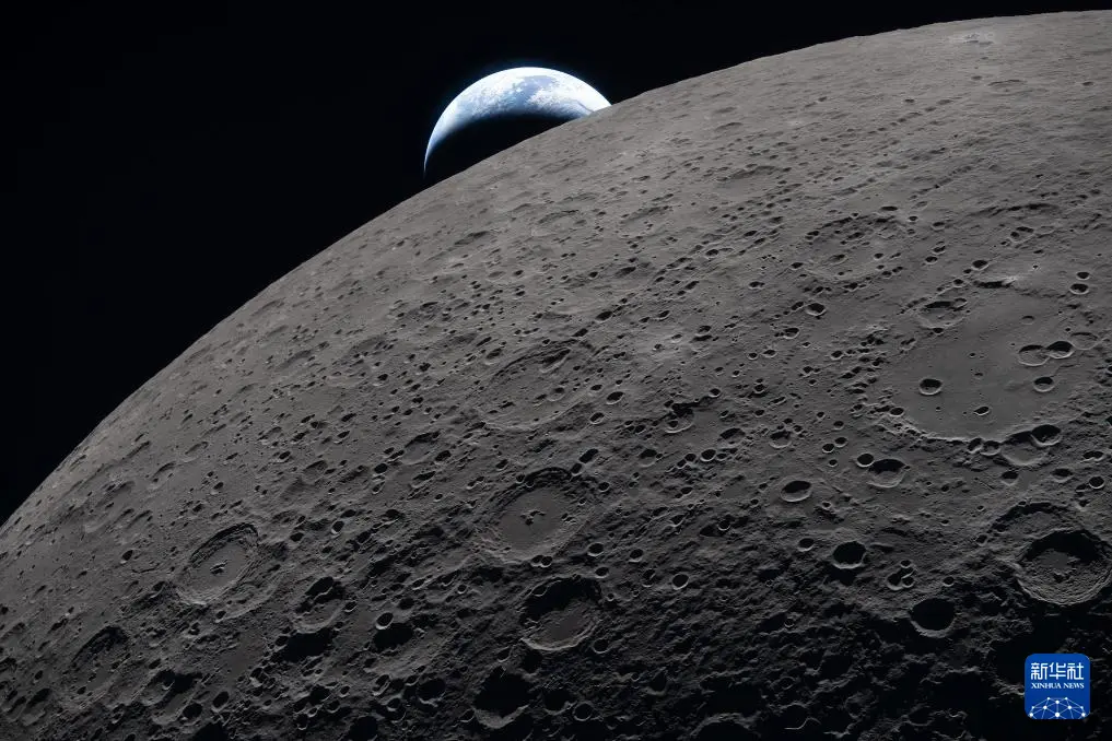 这是4月6日从执行“阿耳忒弥斯2号”载人绕月飞行任务的“猎户座”飞船上拍摄的月球表面。