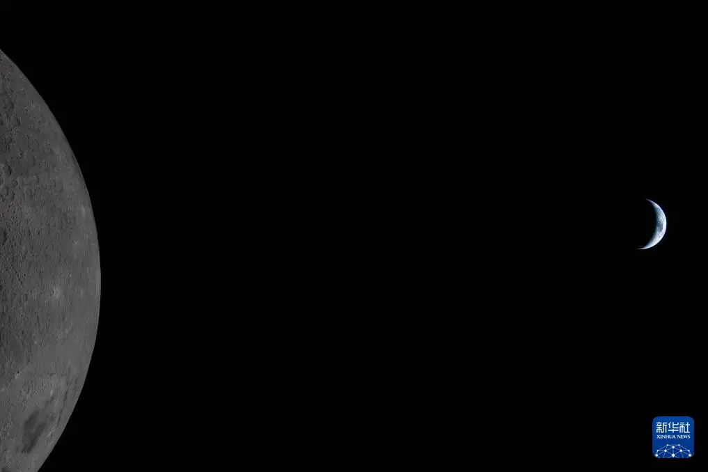 这是4月6日从执行“阿耳忒弥斯2号”载人绕月飞行任务的“猎户座”飞船上拍摄的月球(前)和地球。