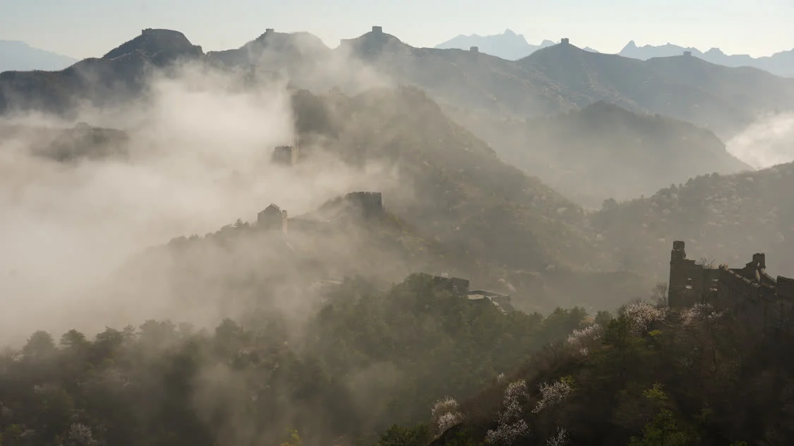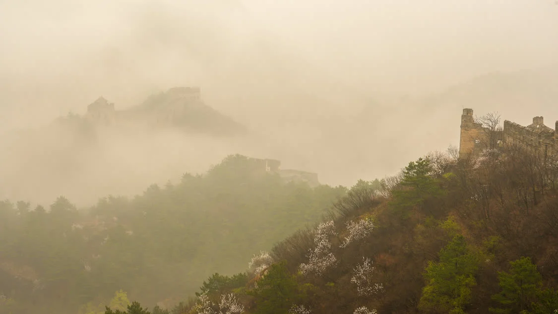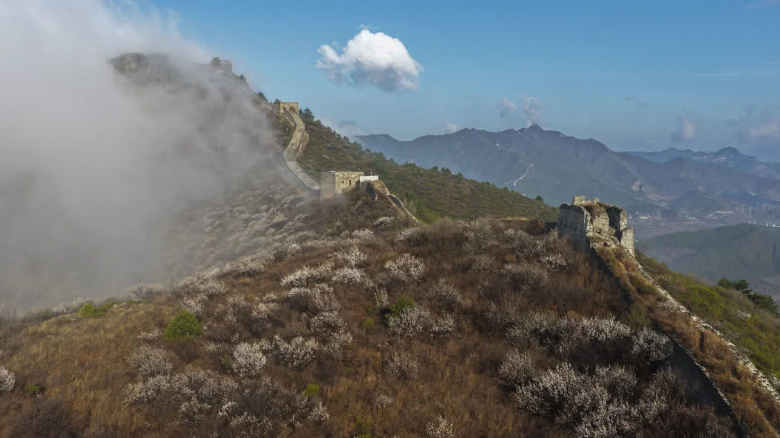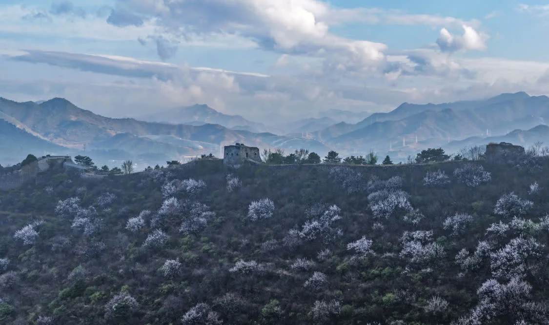 这是4月9日在河北省承德市滦平县拍摄的雨后金山岭长城。新华社发(周万平摄)