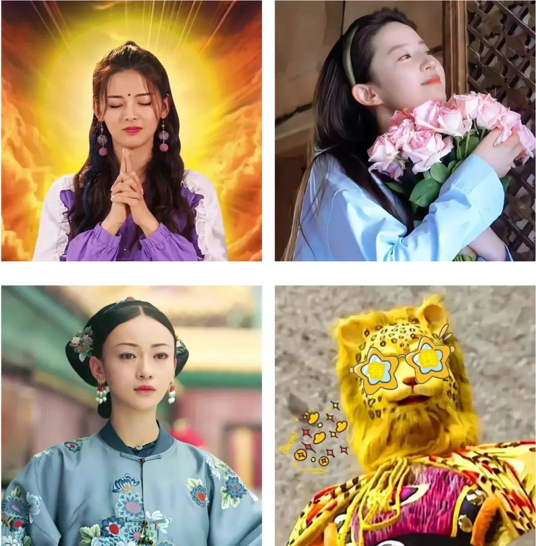 追忆往昔,有上古锦鲤杨超越;想在传统上创新,有“马年尔等皆享福”的马尔福;爱玩谐音梗的,自然是“金钱豹(暴)富”,即央视1986年版《西游记》中的金钱豹;拒绝内卷静等风来的,那就换上刘亦菲的捧花头像。