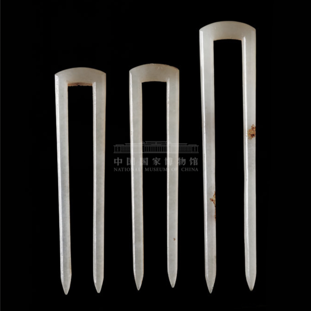 两件戒指为新疆和田白玉制成。光素无纹,玉质细腻,保存完整。出土时,两枚戒指分别位于墓主左、右两手指部位。为研究隋代妇女佩饰提供了实物资料;玉钗做工精细,出土时位于墓主头骨顶部,应为墓主生前使用头钗。