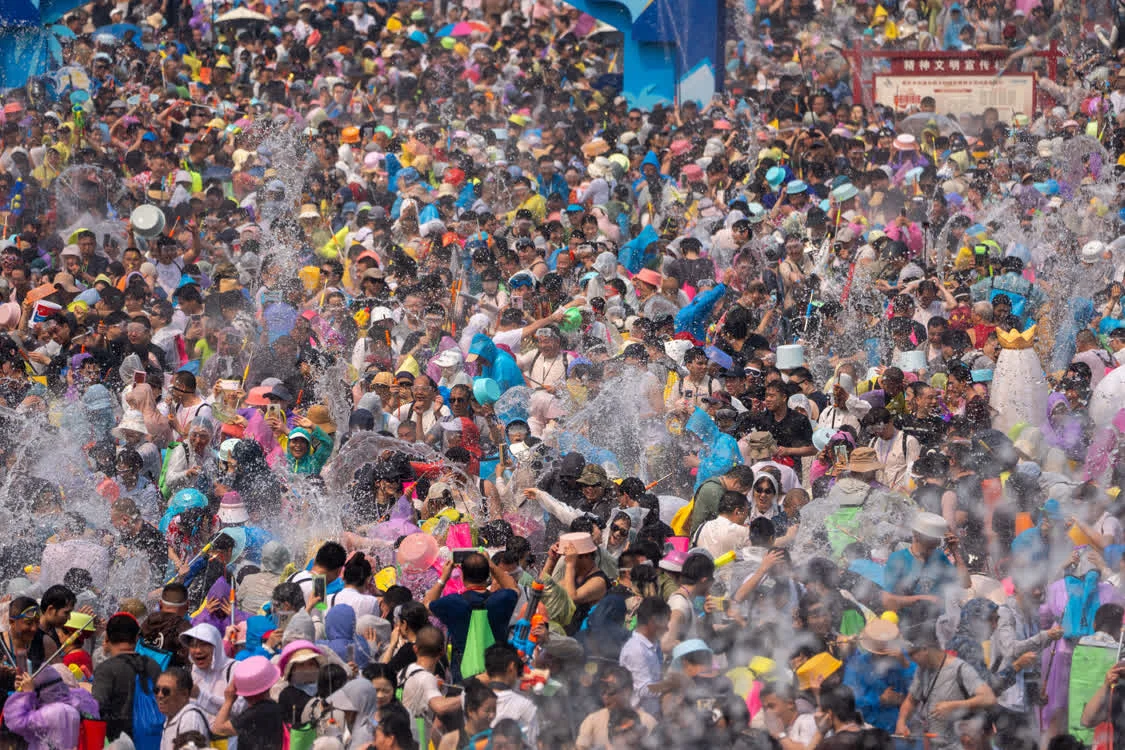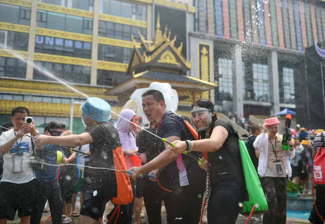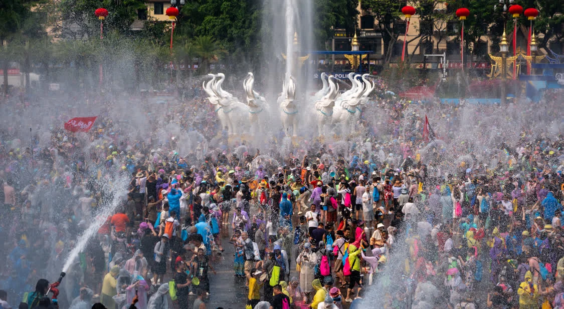 4月15日,云南省西双版纳傣族自治州迎来一年一度的泼水狂欢活动。各族群众与八方游客齐聚景洪市泼水广场,在水花飞溅中共庆泼水节。