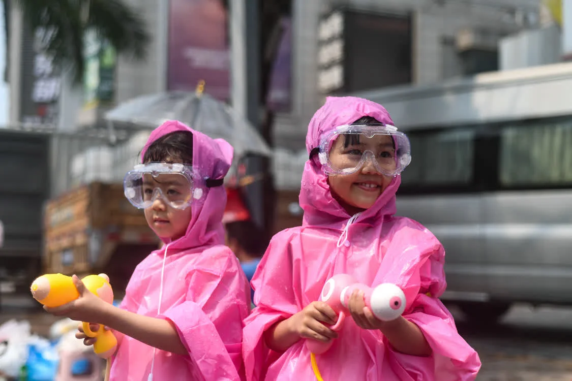 4月15日,小朋友参加泼水狂欢活动。新华社记者 江文耀 摄