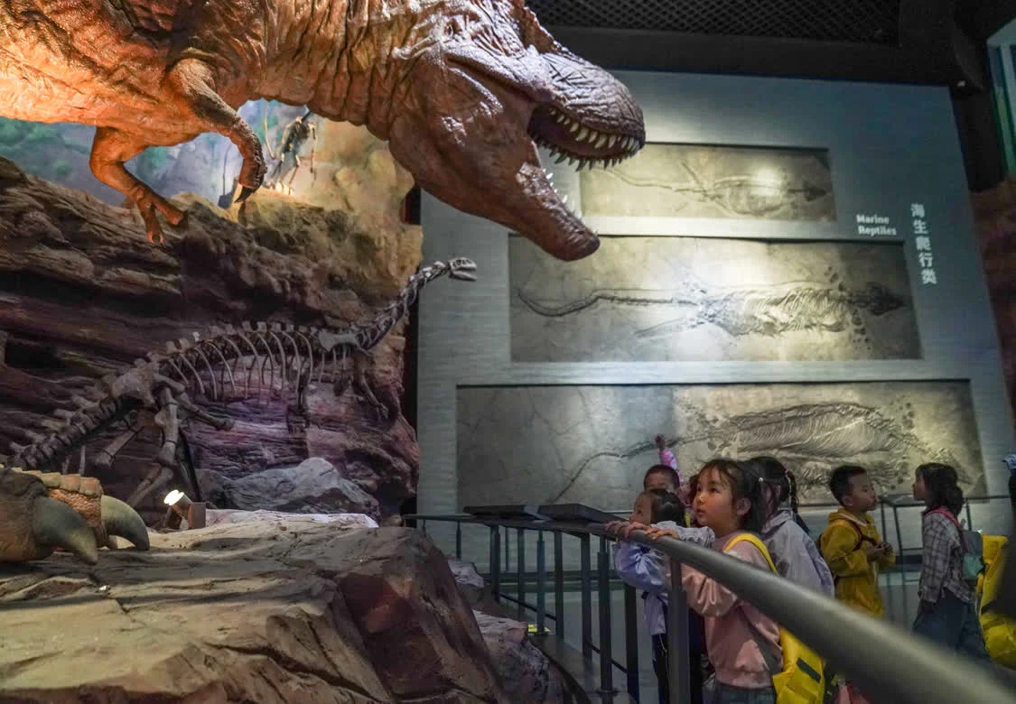 4月18日,游客在澄江化石地世界自然遗产博物馆参观。新华社记者 彭奕凯 摄