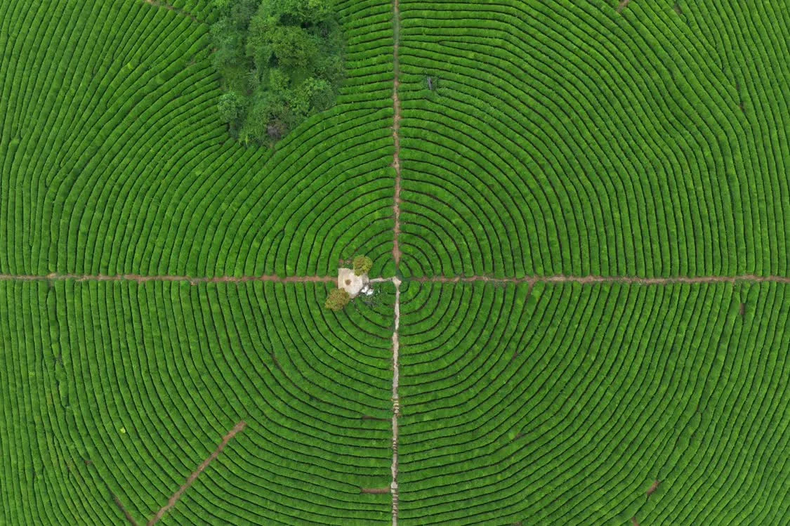 4月19日拍摄的贵州省安顺市西秀区鸡场乡的茶场(无人机照片)。新华社发(程洪凯摄)