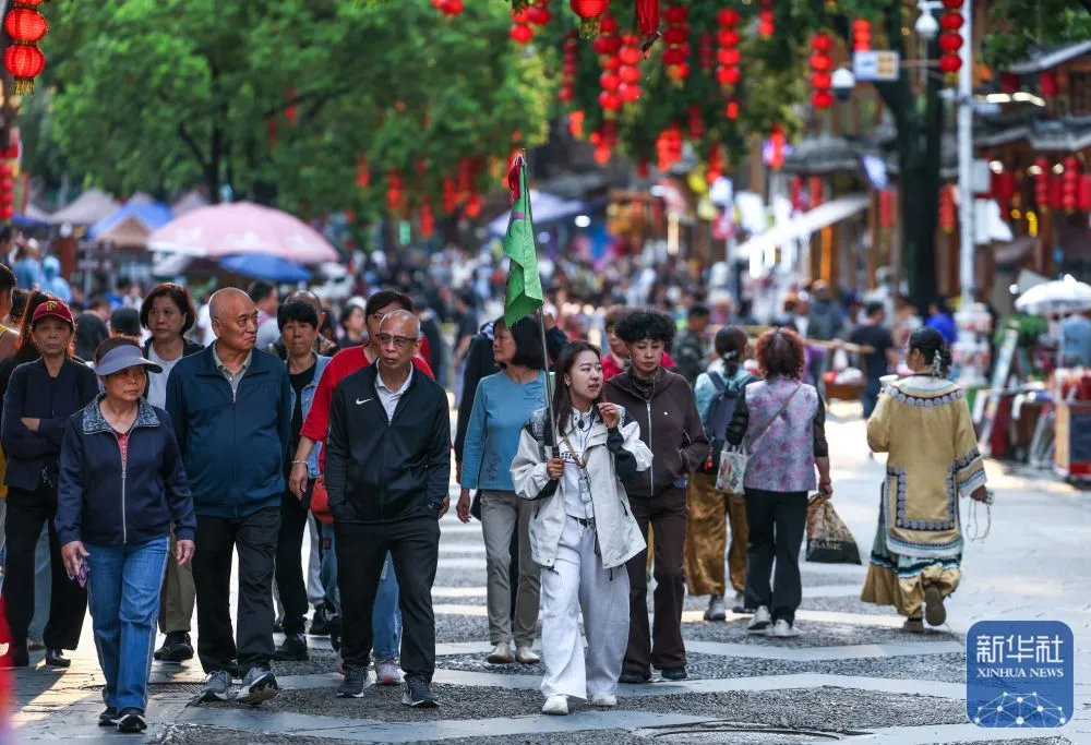 ↑ 4月20日,游客在肇兴侗寨里游览。新华社记者 杨文斌 摄