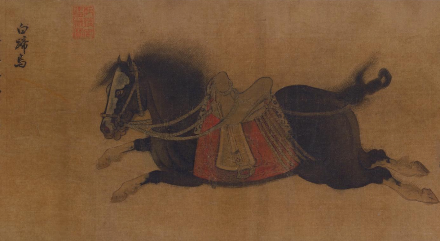 金代画家赵霖的《昭陵六骏图》卷,则将唐太宗李世民为纪念开国征战而镌刻于昭陵墓道的六匹战马——飒露紫、拳毛騧、白蹄乌、特勒骠、青骓、什伐赤——从石刻转化为绢本长卷。