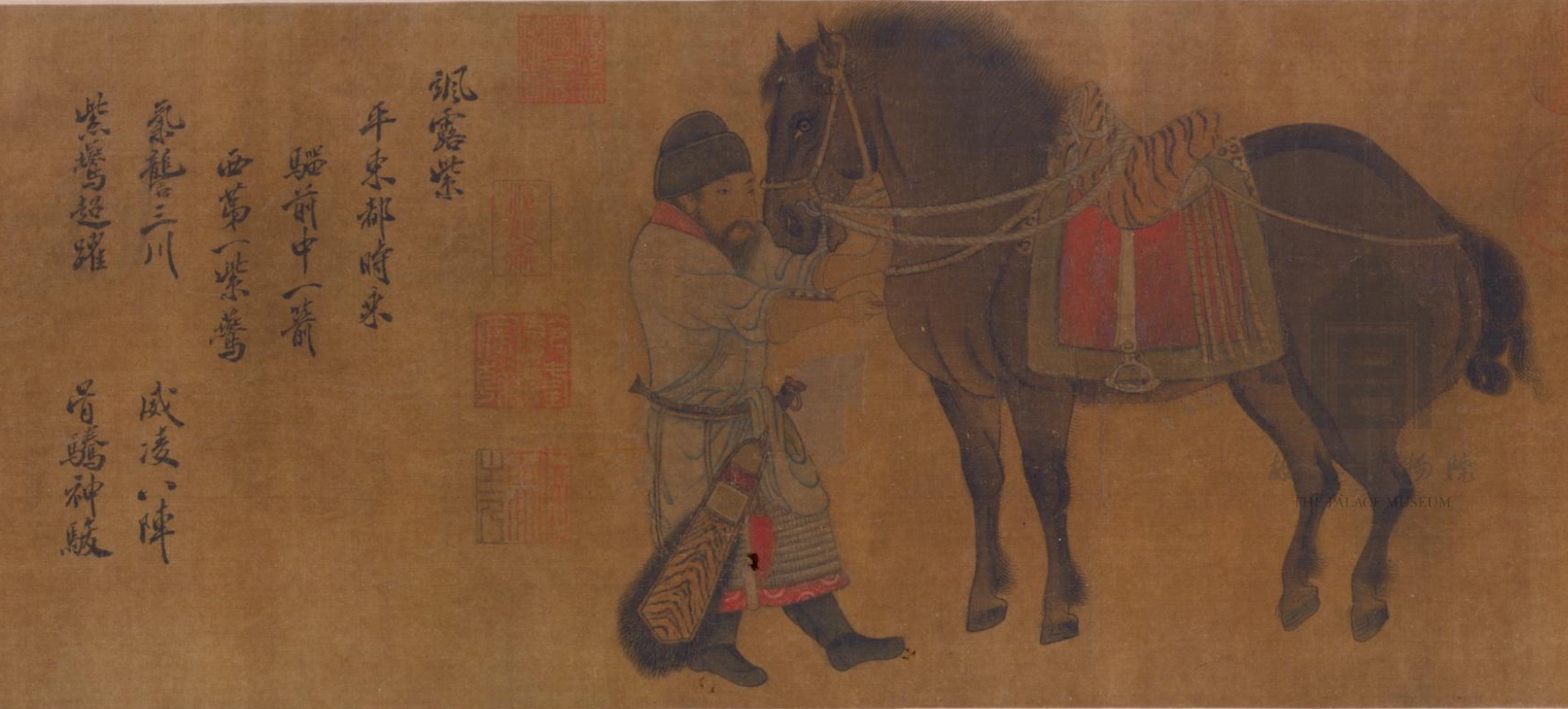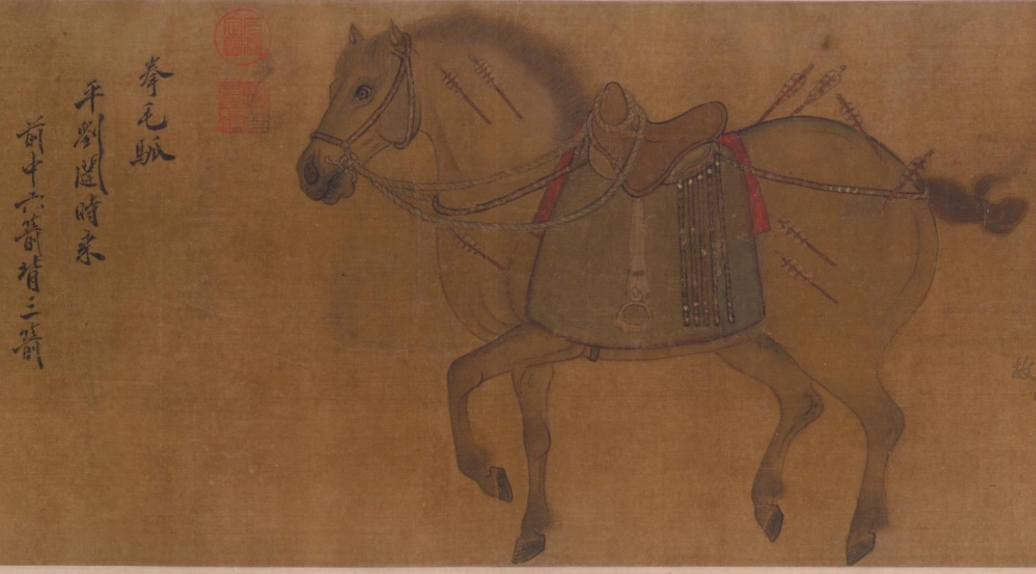 该作绘于金世宗大定年间(1161—1189),六骏造型朴拙,用笔柔和而厚重,富有质感。赵霖为河南洛阳人,金世宗时任职画院待诏,尤擅鞍马。