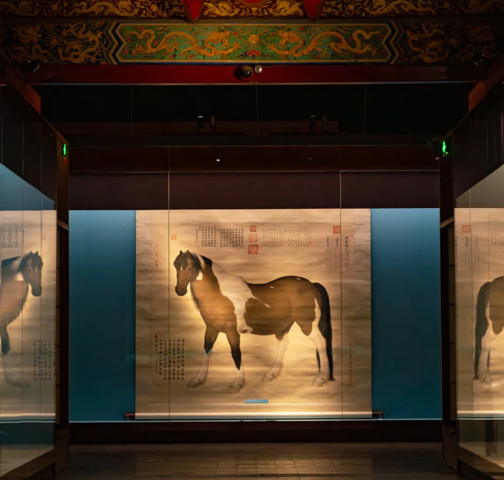 展览分为“行游”“牧放”“武功”“神骏”四个单元,展出55件院藏书画,其中包括国家一级文物20件,首次展出文物28件。重点展品包括唐人(传)《百马图》、(北宋)李公麟《摹韦偃牧放图》、(金)赵霖《昭陵六骏图》、(元)赵孟頫《人骑图》、(元)任仁发《出圉图》、(清)郎世宁《阚虎骝图》等历代画马名作。