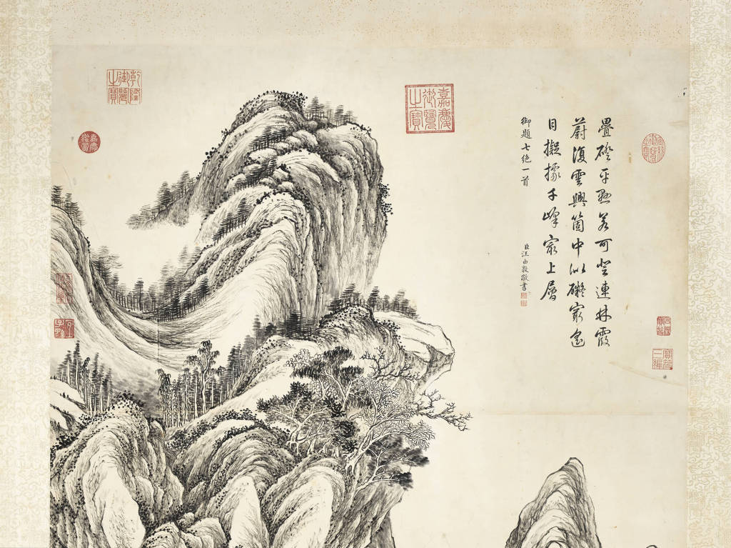 清 钱维城 《画苍崖烟磴》(局部)