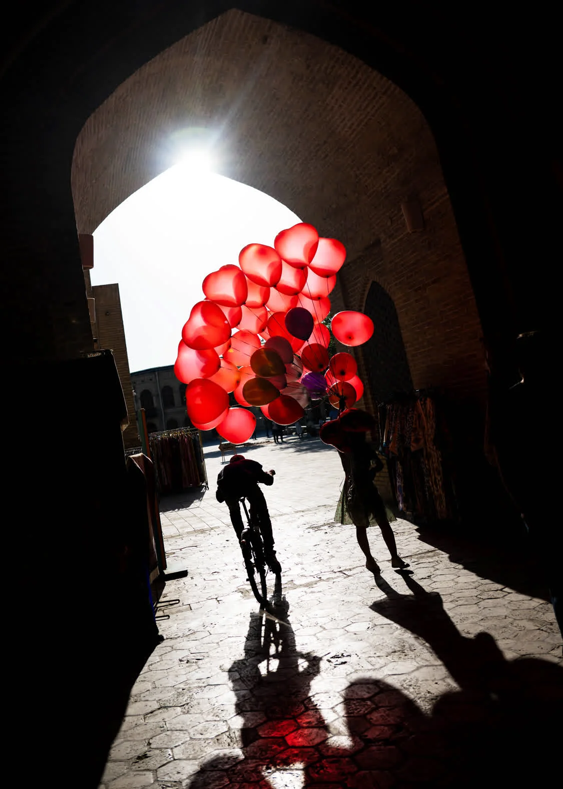 4月24日,一名卖气球的女孩走在乌兹别克斯坦布哈拉古城内。新华社记者 李任滋 摄