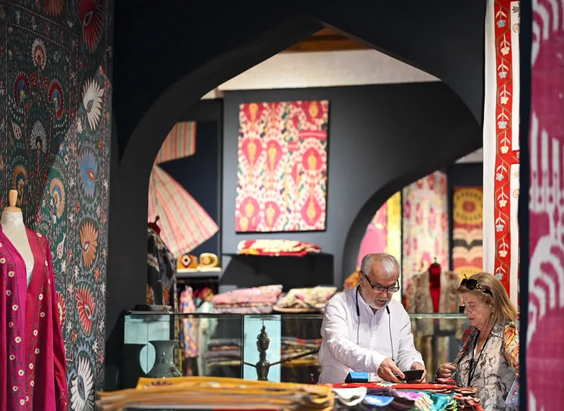 4月24日,人们在乌兹别克斯坦布哈拉古城内的商店购物。新华社记者 李任滋 摄