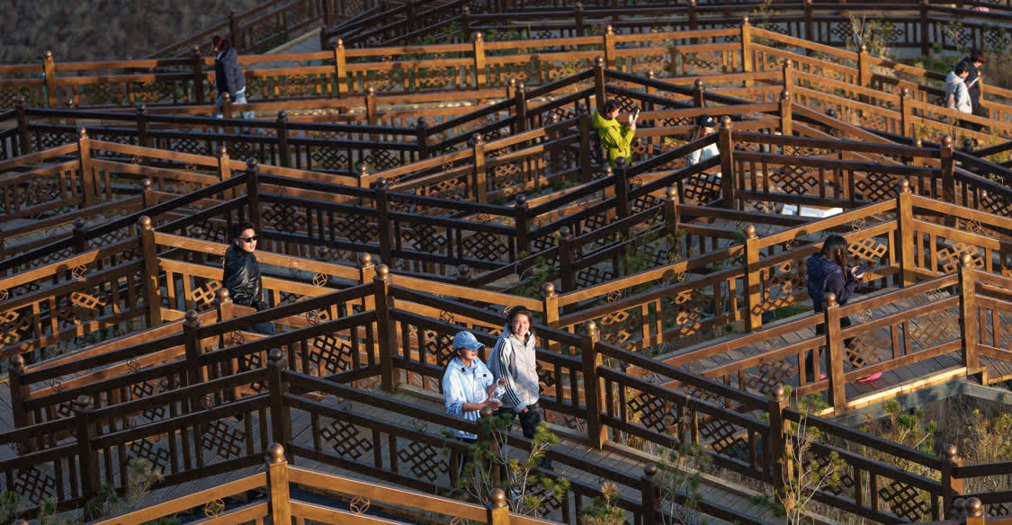 4月26日,游客漫步在拉萨市南山公园的阶梯步道上。新华社记者 丁增尼达 摄