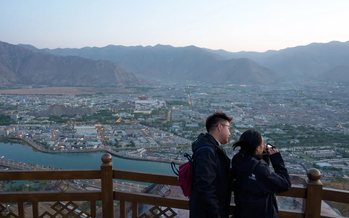 4月26日,游客在拉萨市南山公园拍摄拉萨城区风景。新华社记者 丁增尼达 摄